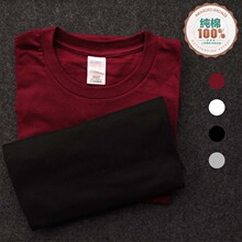 原宿风纯色短袖T恤日系欧美纯棉黑白灰色文化衫圆领TEE打底衫
