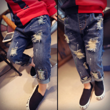 男童春秋牛仔裤 儿童韩版破洞修身长裤2017新款童装 宝宝休闲裤子