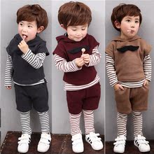 童装男童春款套装2-3-4-5-6岁宝宝马甲儿童新款条纹T恤休闲三件套
