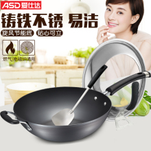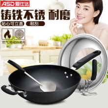 ASD/爱仕达铁锅无涂层炒锅不锈铸铁锅电磁炉通用平底生铁锅炒锅