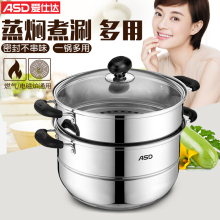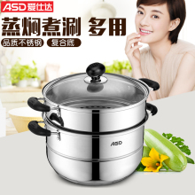 爱仕达复底双层蒸锅304不锈钢蒸锅多层蒸笼蒸屉电磁炉蒸锅