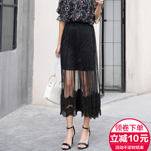 网纱半身裙女中长款2017夏新款显瘦高腰a字百褶裙子蕾丝透视纱裙
