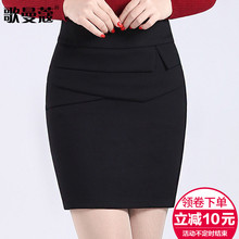 高腰包臀裙半身裙秋冬短裙大码职业包裙弹力松紧腰修身黑色一步裙