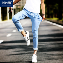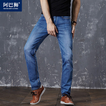 阿巴狮高弹力牛仔裤男士新款小脚裤青年男裤子修身直筒长裤大码