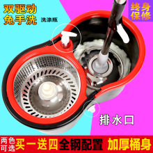 双驱动自动拖把桶旋转拖把家用不锈钢手压式甩干免手洗拖布墩布桶