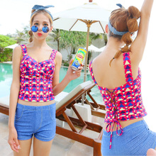 小胸聚拢性感比基尼韩国钢托泳衣女遮肚加厚分体平角显瘦高腰泳装