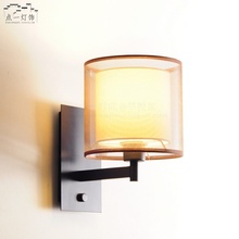 双层布艺灯罩壁灯 北欧美式现代简约灯饰 单头卧室客厅餐厅灯具