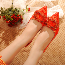 婚鞋女中国风方扣水晶高跟鞋水钻刺绣花鞋汉服结婚鞋子红色新娘鞋
