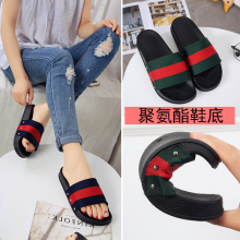 2017夏季新款百搭条纹一字拖女平底韩版防滑休闲外穿厚底沙滩拖鞋