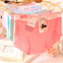 莫代尔纯色蕾丝无痕女士内裤蝴蝶结可爱包臀中腰内裤三角短裤