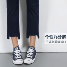 磊集大码女装九分牛仔裤女胖MM不规则裤子200斤春装2017新款