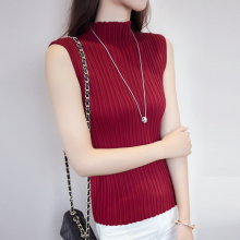 无布例外2478无袖气质外穿内搭 半高领瓦楞条秋款针织背心打底衫