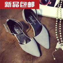 欧洲站平底鞋尖头女单鞋浅口水钻方扣2016春季新款休闲百搭女单鞋