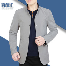 2017春秋季中青年男士夹克薄款纯色立领外套修身休闲中老年爸爸装