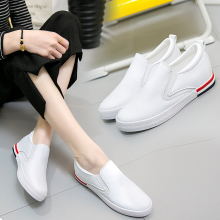 2017春季新款皮面休闲小白鞋内增高女鞋学生韩版平底套脚高帮鞋潮