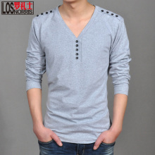罗礼士春装新款男士长袖t恤 潮V领休闲青年长袖t恤 男修身气质神