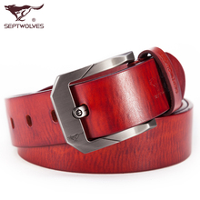 正品七匹狼针扣皮带 男士韩版时尚红棕色裤腰带 青年男式潮腰带