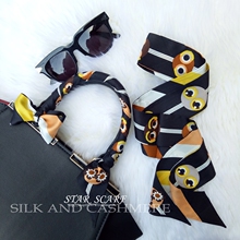 真丝绑包包手柄丝巾骷髅头领巾丝带腰带头巾编发带包柄配饰手腕巾