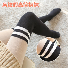 日系春秋薄款大腿纹身假高筒袜连裤袜拼接丝袜防勾丝长筒袜过膝女