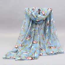 2017新款时尚百搭春夏款薄款麻雀图案巴厘纱女士丝巾围巾沙滩巾
