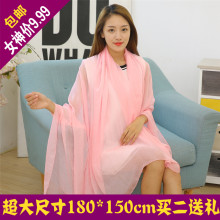 春夏韩版百搭雪纺丝巾夏季超大围巾长款防晒披肩两用纱巾沙滩巾女