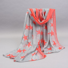 2017新款时尚百搭春夏款薄款五角星图案巴厘纱女士丝巾围巾