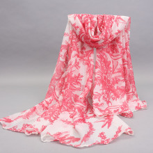 2017新款时尚百搭春夏款薄款青花瓷图案巴厘纱女士丝巾围巾