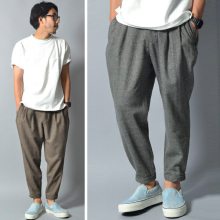 秋冬热卖 日系潮流 钢花呢哈伦裤宽松小脚九分毛呢冬季男士阔腿裤