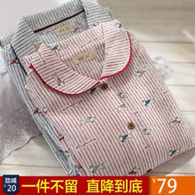 【天天特价】全棉长袖睡衣套装薄款春秋纯棉双层纱布春夏家居服女