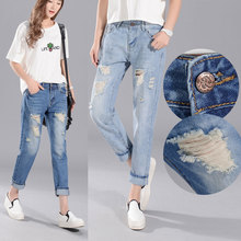 2016春夏季新款破洞牛仔裤女乞丐裤女学生直筒九分裤女宽松韩版潮