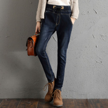 秋冬季加绒加厚牛仔裤女弹力显瘦学生修身小脚长裤韩版保暖百搭款