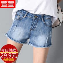 显瘦破洞牛仔短裤女夏2017新款浅色热裤子修身学生弹力毛边韩版潮