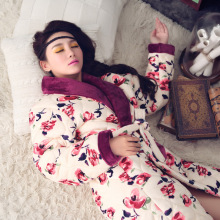 茜靓冬季睡衣蕾丝法兰绒加厚家居服加长浴袍女款珊瑚绒睡袍