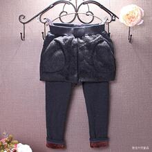 女童毛呢假两件打底裤 加绒加厚松紧腰宝宝短裤 细绒长裤2016冬装