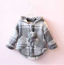 婴童宝宝加绒大衣小熊挂饰经典格子女童婴儿毛呢风衣外套2016秋冬