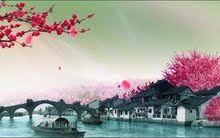 滴水江南 梅花花瓣飞舞 中国风 城楼小船 扇子led背景视频VJ素材