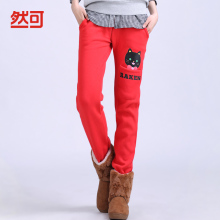 然可修身加绒运动裤女冬季女裤加绒加厚卫裤保暖休闲裤子小脚长裤