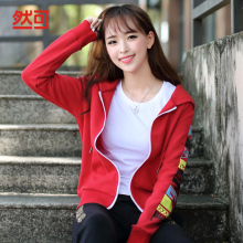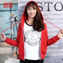 然可春秋款卫衣女韩版潮学生带帽拉链开衫纯色长袖宽松运动外套女