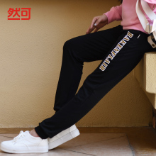 然可纯棉运动裤女春夏宽松显瘦薄款阔腿直筒休闲长裤学生跑步卫裤