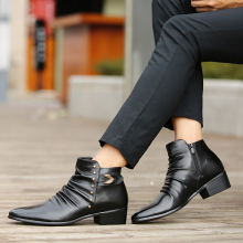 冬季皮靴男短靴尖头韩版男士马丁靴英伦真皮休闲鞋潮流拉链男靴子