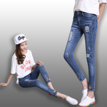 九分裤女春夏新款破洞九分牛仔裤女小脚裤修身显瘦2017韩版学院风