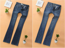欧美外贸原单 美国中腰高弹浅蓝加长女式装牛仔微中喇叭裤新款潮