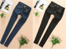 欧美外贸原单 美国中腰高弹修身显瘦小脚牛仔裤蓝黑双色春夏新款