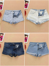 欧美外贸原单毛边磨破高腰牛仔短裤水洗破洞修身显瘦热裤三色
