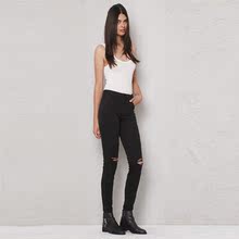 包腿版型小脚裤 美国品牌PA***n简约百搭黑色高腰牛仔裤