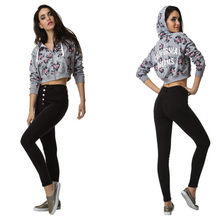 外贸T家ally修身铅笔裤 五扣黑色收腹超高腰弹力小脚裤 九分裤