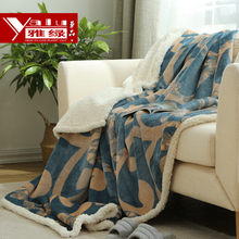 雅绿印花复合羊绒毯秋冬保暖办公室汽车空调休闲毛毯加厚绒毯单人