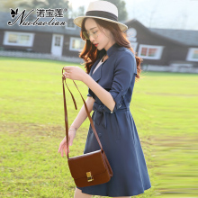 诺宝莲风衣女中长款2017春秋季新款韩版休闲修身双排扣英伦外套潮