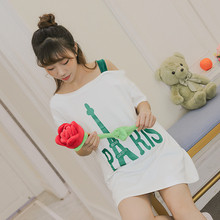 2017夏新款套头露肩T恤女韩版时尚字母印花中长款学生百搭上衣潮