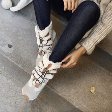 韩国代购冬季羊羔毛运动内增高雪地靴绑带中筒靴加绒棉鞋登山鞋女